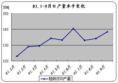 9月粗鋼日均產(chǎn)量138.43萬(wàn)噸,繼7月小幅回落后連續(xù)兩個(gè)月小幅上揚(yáng),粗鋼生產(chǎn)勢(shì)頭呈回升趨勢(shì)。